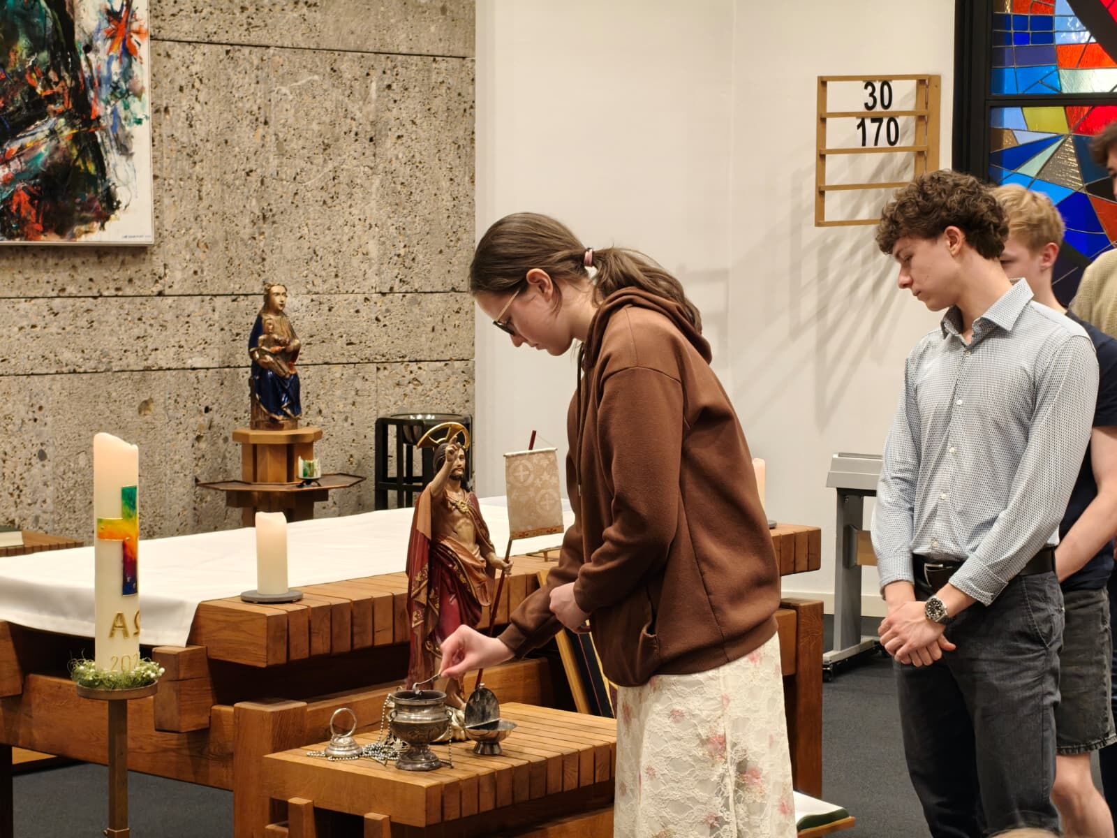 Danach ging es in einer offenen Austauschrunde weiter, in der unsere Jugendlichen neugierig nachfragten – und spannende Einblicke in das Leben eines Bischofs erhielten: ein dicht gefüllter Terminkalender, kaum freie Zeit, nur zweimal im Jahr Urlaub, Aufregung vor Live‑Fernsehauftritten und auch amüsante Geschichten hinter den Kulissen von ORF‑Interviews. Ebenso ehrlich sprach der Bischof über das Schreiben von Predigten, Künstliche Intelligenz und über die Auswirkungen von Social Media auf unser Miteinander.