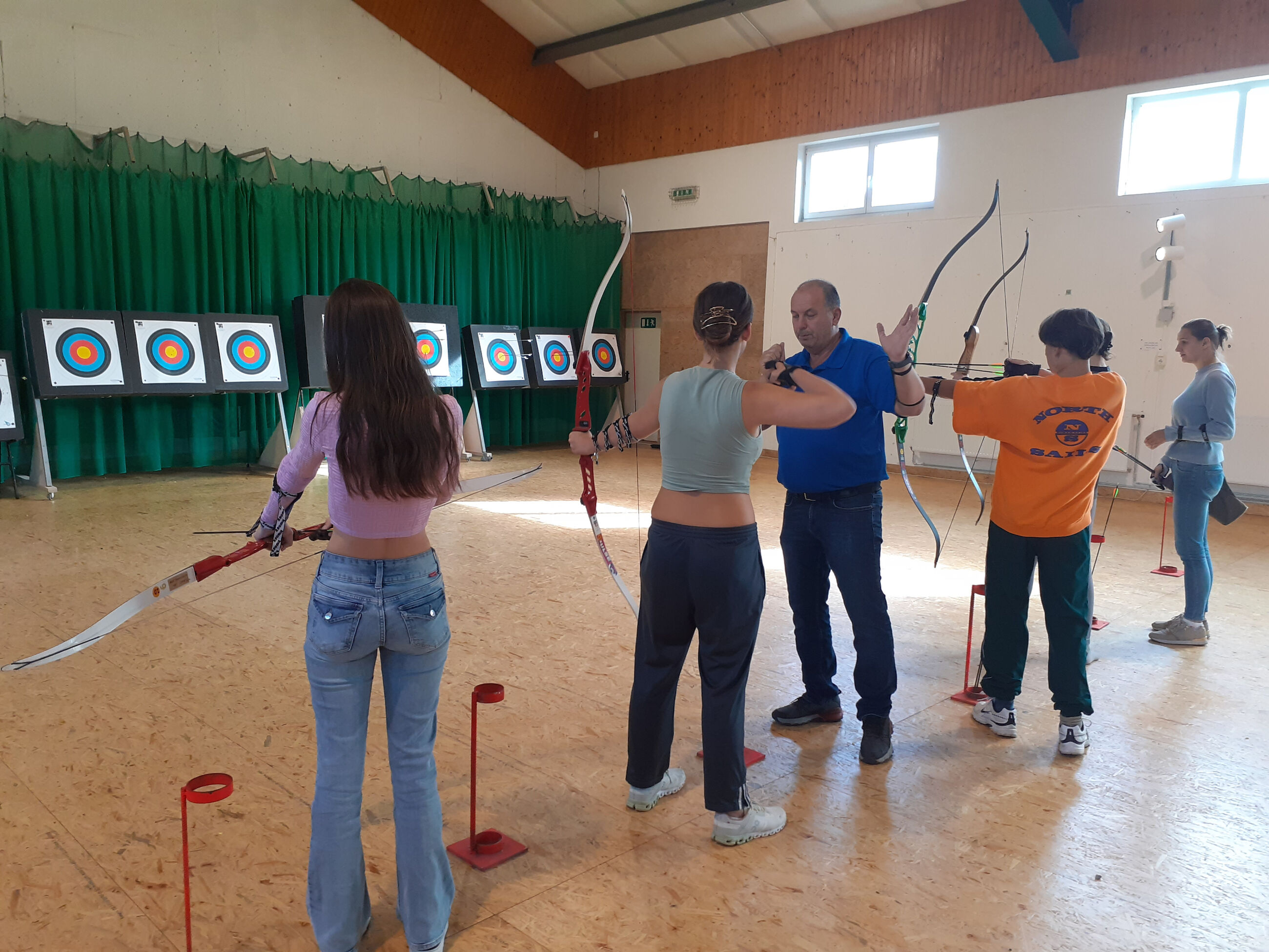 In den frühen Morgenstunden machte sich eine weitere Gruppe beim Start-Wochenende auf zum BSC Semriach - dementsprechend verschlafen waren einige Schüler:innen noch... Der Anblick der gigantischen Bogenschießhalle inmitten von Wäldern und Bergen ließ aber gleich die Abenteuerlust aufkommen und bei den ersten Schussversuchen - bei denen zum Teil nicht einmal die Scheibe getroffen wurde - wurde schnell klar, dass Bogenschießen auch gelernt sein will. Es benötigte einiges an Geduld und Durchhaltevermögen, aber nach mehreren Versuchen war eine deutliche Steigerung sichtbar und die Schüsse trafen schließlich regelmäßig genau ins Gold!