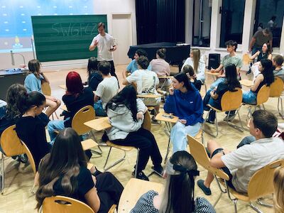 - 09.10.2025 - Evening of Choice mit Wahlmöglichkeit zwischen Yoga und Meditation, Kriminalfälle lösen bei “Black Stories” oder Diskussionsrunde mit Kurzfilmdoku zum Thema „Gefahr im Anflug – Wie Drohnen Europa bedrohen“